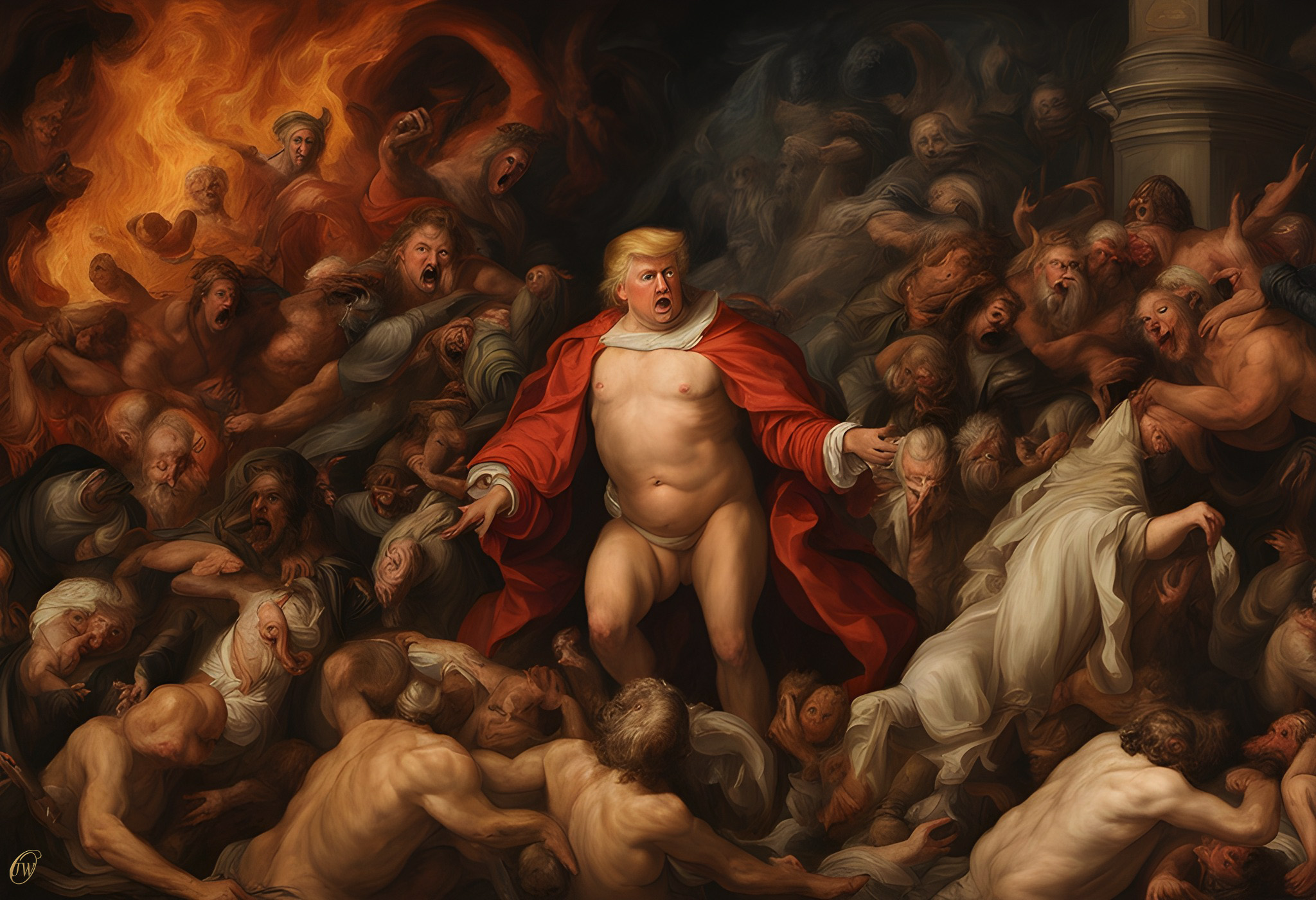 Depiction of Donald Trump surrounded by American citizens in Hell after 4 more years as President